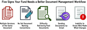 Developing defined workflows around key document processes can help improve data retention by automating tasks and increasing standardization across your firm. Unfortunately, most funds rely on email, and unorganized folders to manage their documentation which leads to significant issues with data quality. A recent report from The Association for Information and Image Management found that 28% of organizations have been criticized in the last 3 years by their auditors for poor records. An ECM system can help your firm secure the underlying processes around managing your data by creating workflows that define the entire process from end to end.