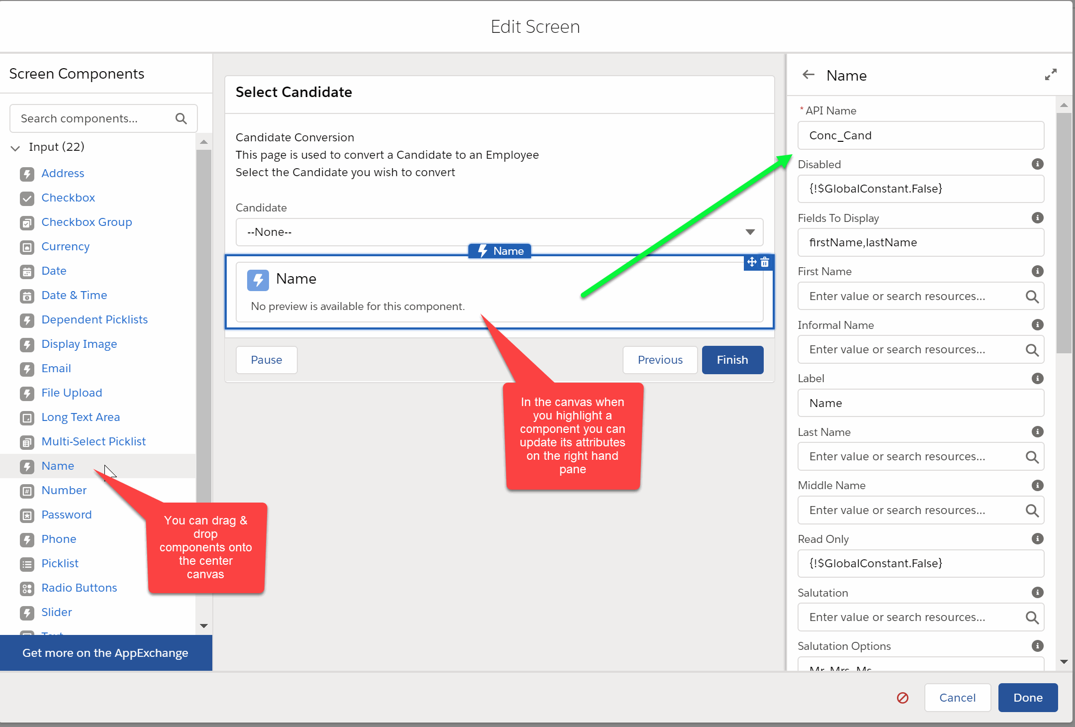 As we noted in the intro, Salesforce has done a great job of providing the very familiar UI canvas, with the components on the left-side panel and the properties on the right-side panel. Certainly, this consistent approach to how Salesforce’s Lightning tools work will make it easy for people creating the flows to quickly adapt to the new tool.