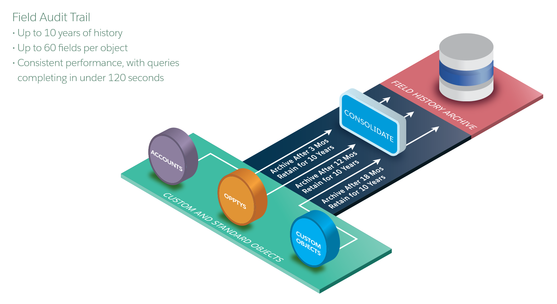 - Firms should first identify their data retention and audit period on a per object basis to understand exactly where and how Audit Trails may benefit their business processes. While the maximum possibility is for 10 years and 60 objects, firms should find the ideal balance between complete oversight and operational efficiency. Additionally, firms should consider the unique regulatory guidelines they must adhere to while customizing the service to fit their needs.